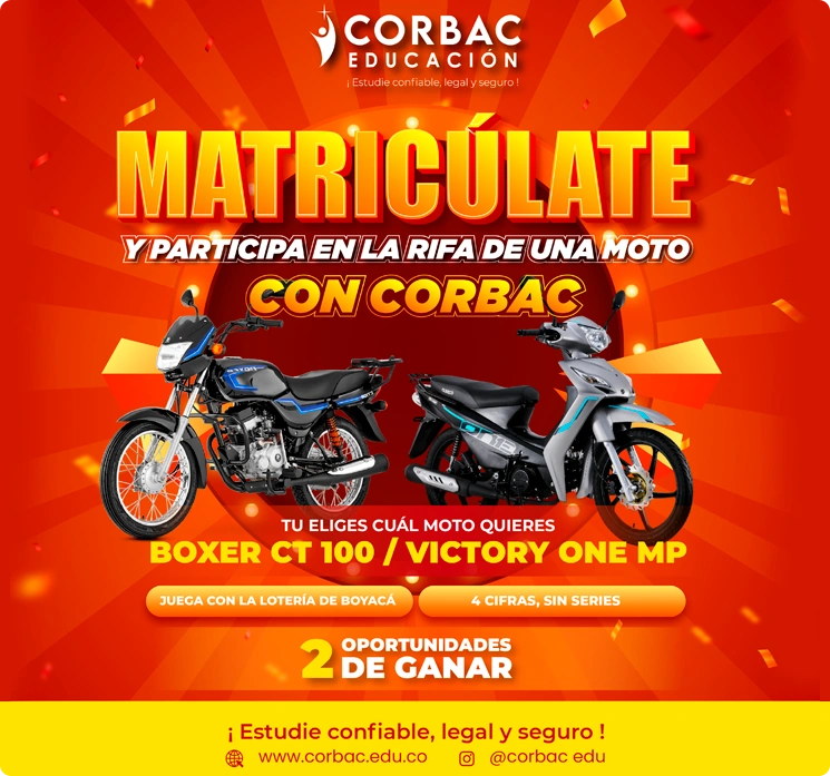 CORBAC quiere que tanto jóvenes como adultos se motiven por estudiar y prepararse para luchar por un mejor futuro, así que preparamos una rifa para premiar a un solo ganador por sus esfuerzos y ánimos de estudio con una moto nueva de su elección entre las opciones dadas por CORBAC motivando así a sus estudiantes y demostrarles que el compromiso, trae grandes resultados.